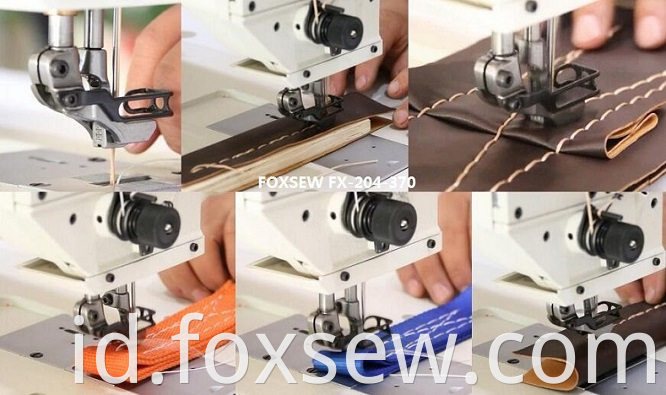 Fitur: Bahkan menjahit dengan panjang jahitan panjang dan benang tebal, FX-204-370 ditandai dengan pola tusukan yang sangat baik dan pembentukan jahitan yang seragam, untuk desain yang sangat kokoh dari bagian-bagian mekanisnya dan aksi pemberian makan yang ditingkatkan. Mesin ini dengan kait antar -jemput silinder yang berat dirancang untuk memproses benang dan material yang ekstrem, seperti pembuatan barang -barang kulit, tekstil khusus, sofa, furnitur, bantal kursi mobil, pelapis mobil, tenda, harness, pelana, dan industri dekorasi.